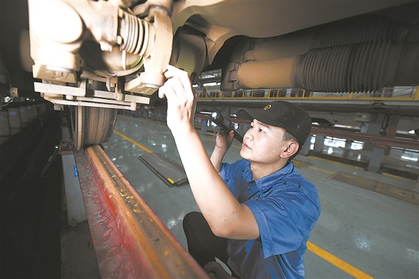 星光不负赶路人。2024年,李鹏辉荣获全国五一劳动奖章。从北京领奖归来,同事们打趣问他:“现在荣誉加身,还会钻车底看车吗?”他笑着回答,“还是那句话,修车的人得想着坐车的人!既然选择了这份事业,不管啥荣誉,车底该钻还得钻。”