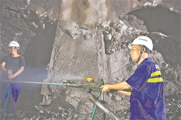 图为李友坤进行隧道钻爆作业。陶宣羽 摄