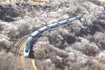 五一假期,湖北麻城龟峰山杜鹃花迎来最佳观赏期,中国铁路武汉局集团有限公司(下称武铁)在汉口、麻城北站间每天往返开行D9300、D9299次两趟...