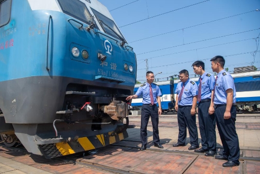 6月12日,中国铁路成都局集团有限公司重庆机务段渝怀线的列车司机们在进行工作交流。新华社记者 唐...