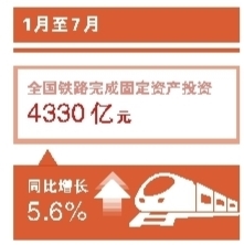 1月至7月全国铁路完成固定资产投资4330亿元同比增长5.6%