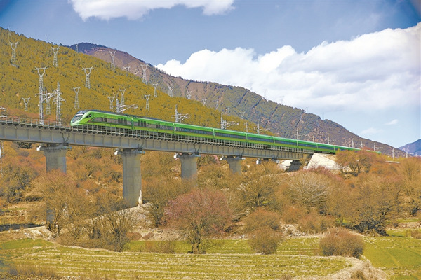 一列复兴号高原内电双源动车组列车飞驰在拉林铁路上。马建林 摄